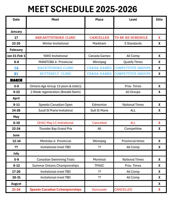Please note that Swim Ontario and Swimming Canada Fees are non-refundable