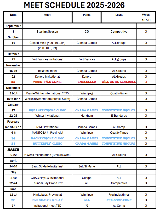 7. Waves 13+ Meet Schedule 2025-2026